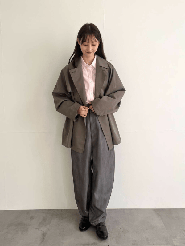輕盈中長版風衣,極簡設計,寬鬆有型,防潑水機能,兼具時尚與實用性。