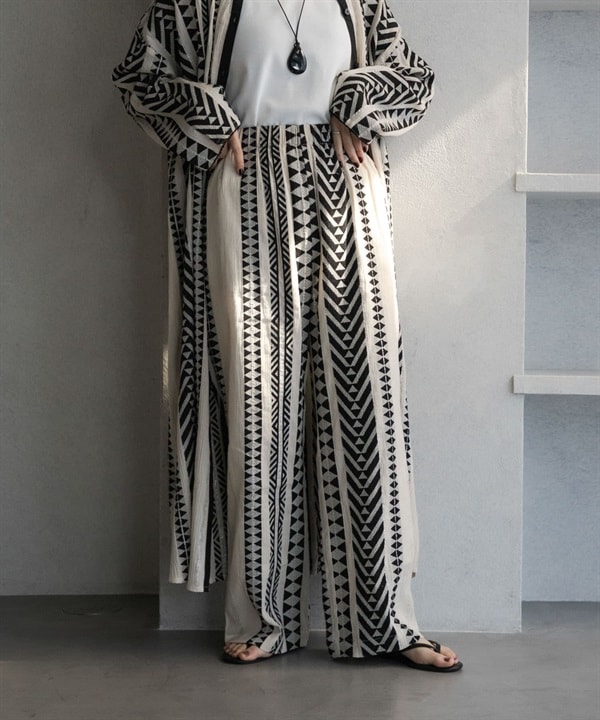 緹花圖案輕便長褲