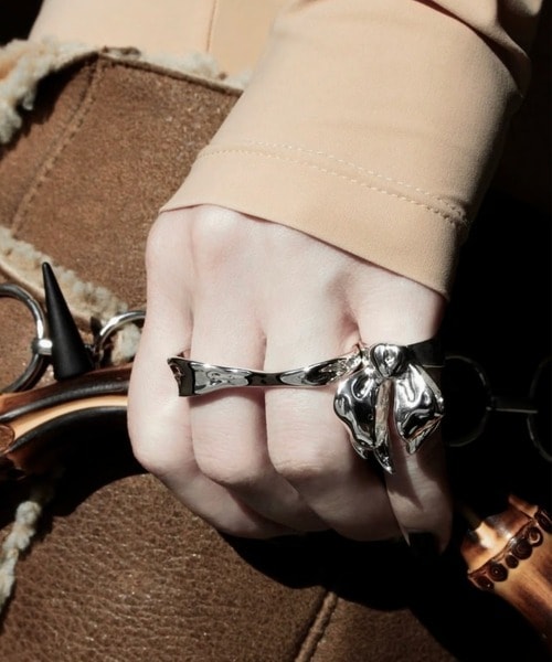 以絲帶為主要元素製作的系列作品,將柔美與力量感完美融合,展現出優雅與現代感的平衡。絲帶作為飾品的設計元素,象徵著女性的柔美與自由,與品牌的設計理念完美契合,呈現出獨特的藝術魅力。