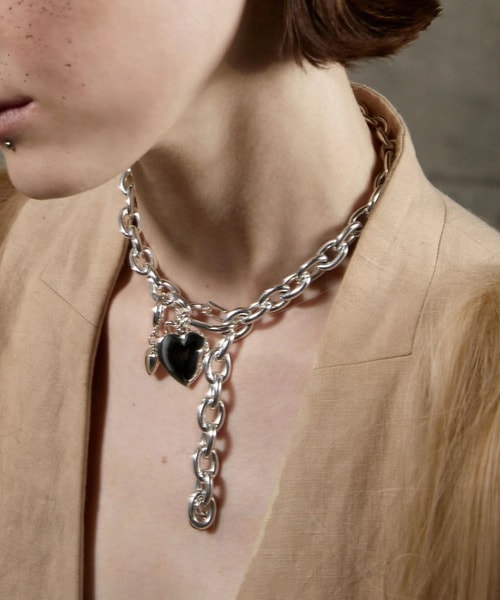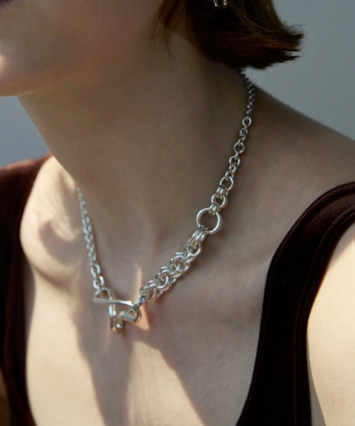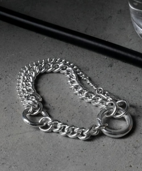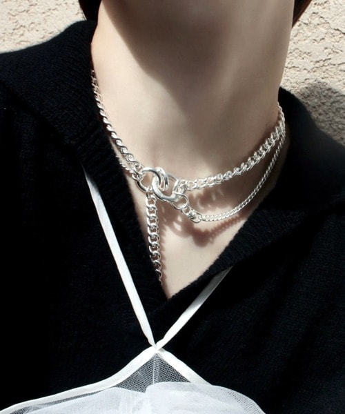 帶有街頭風格元素的項鍊,設計上可將掛於鉤環上的金屬圓環拆卸,自由變化為更簡約的造型,依照喜好展現不同風格。