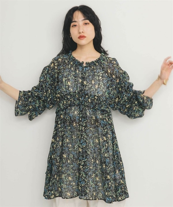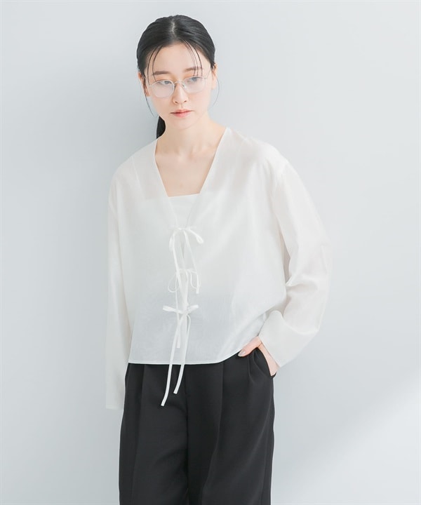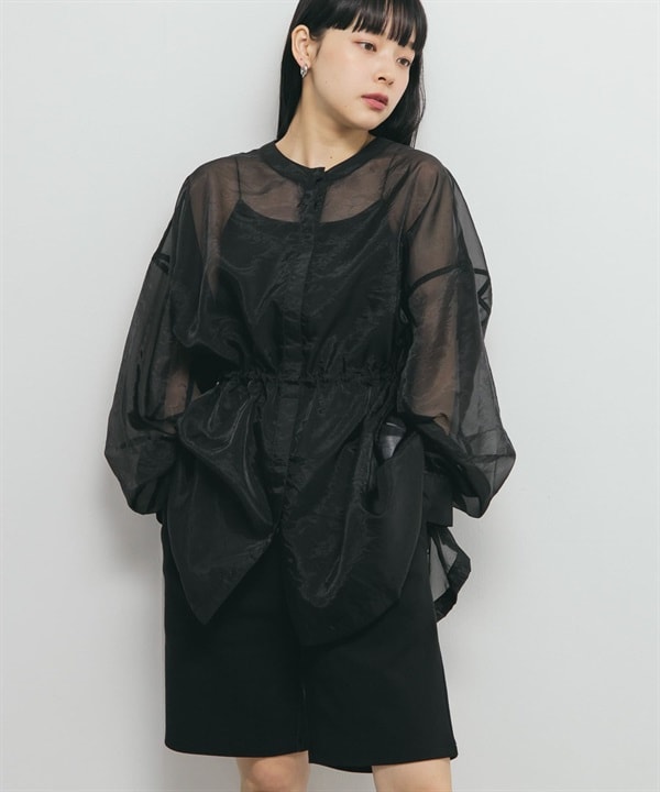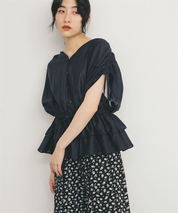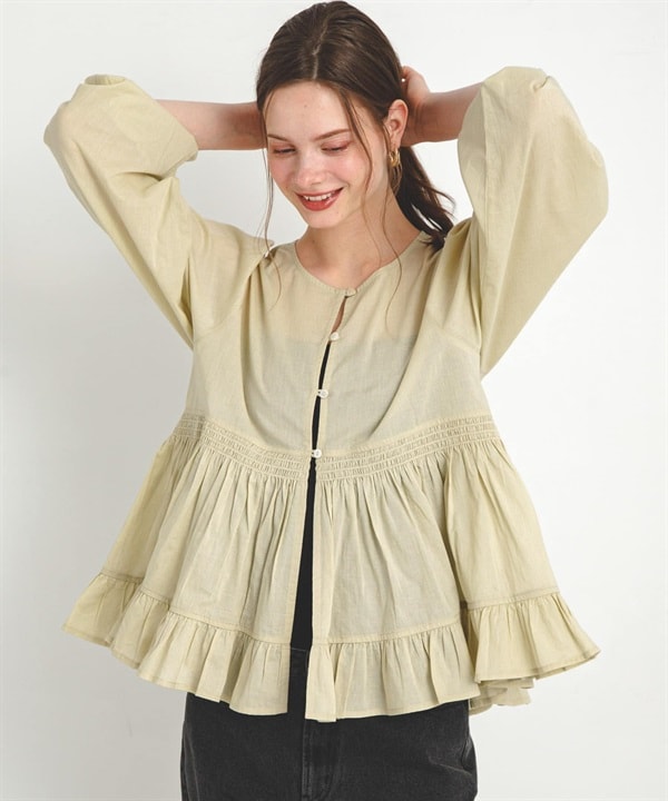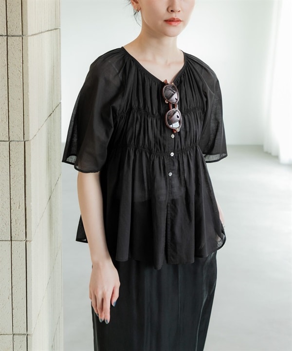 UR TECH 棉質巴里紗側邊碎褶罩衫