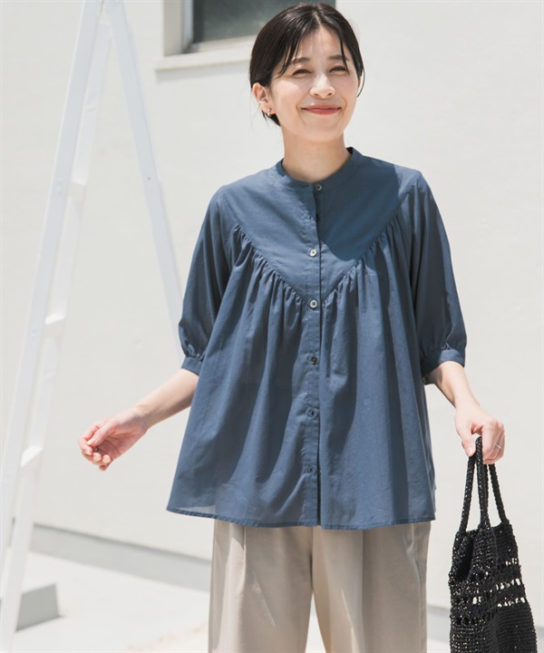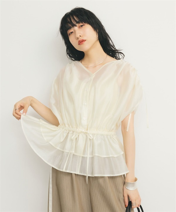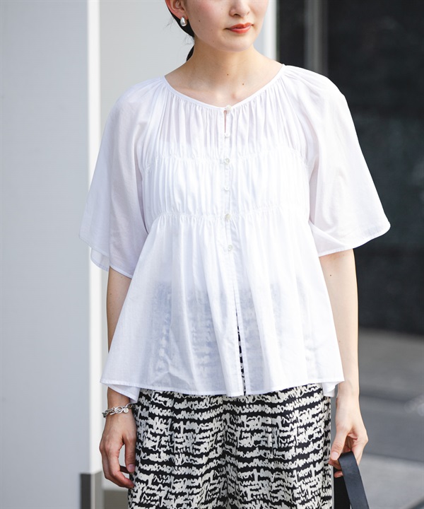 UR TECH 棉質巴里紗側邊碎褶罩衫