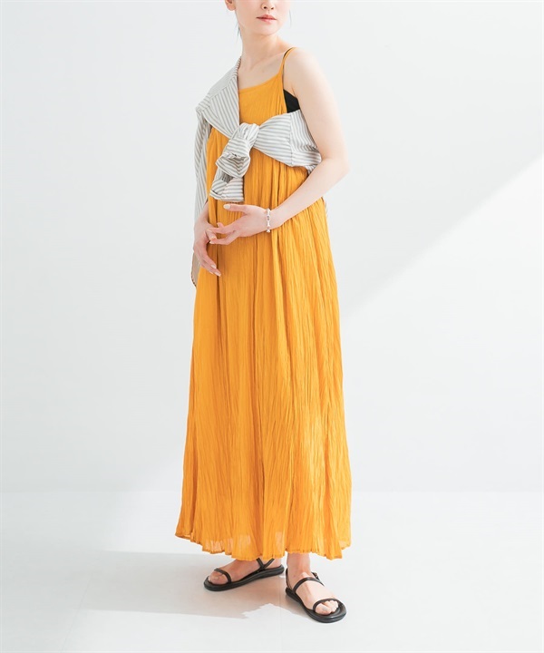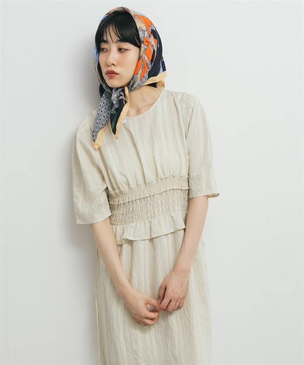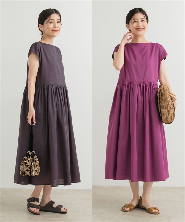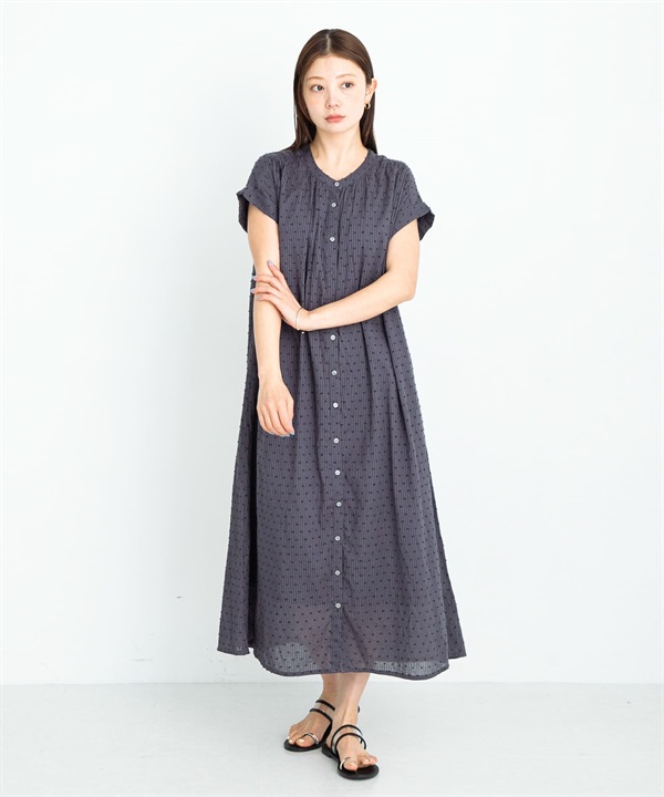 棉質巴里紗碎褶法式袖洋裝(附襯裙)