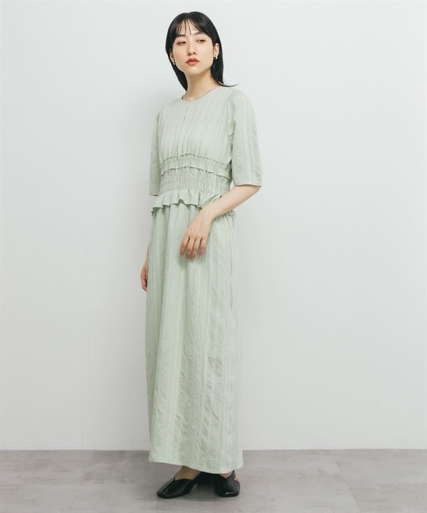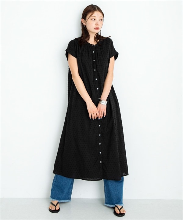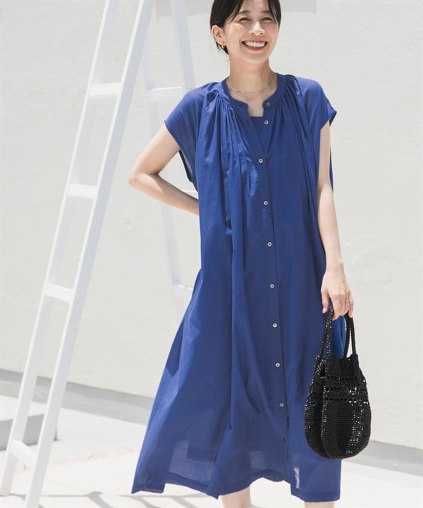 棉質巴里紗碎褶法式袖洋裝(附襯裙)