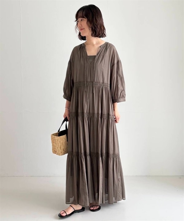 F by ROSSO 棉質巴里紗打褶蛋糕洋裝