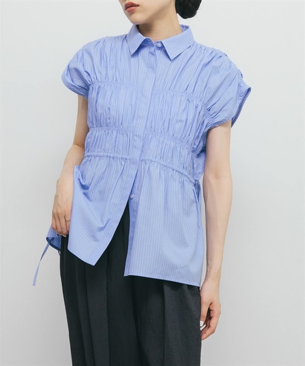 UR TECH 棉質巴里紗碎褶法式袖罩衫