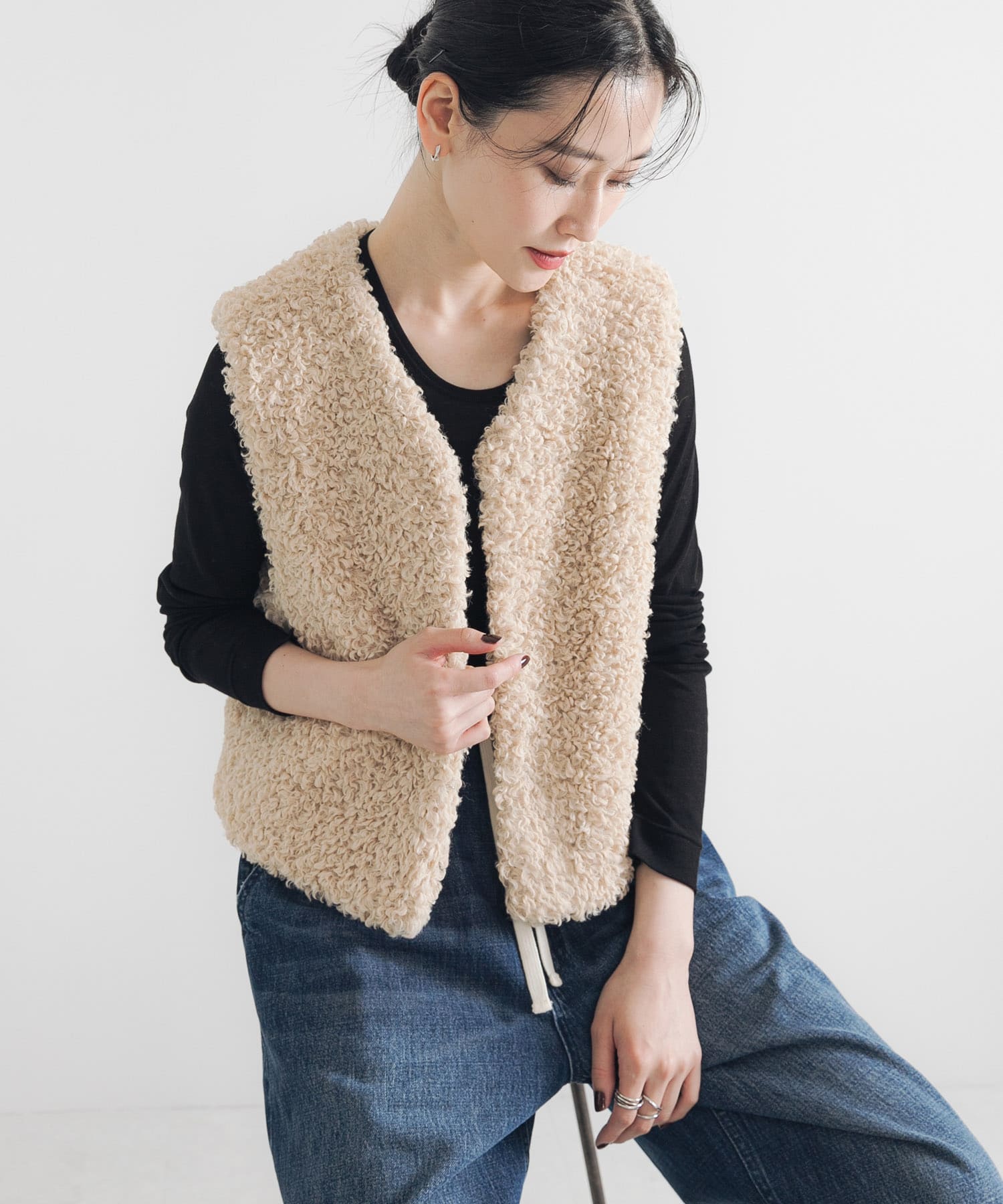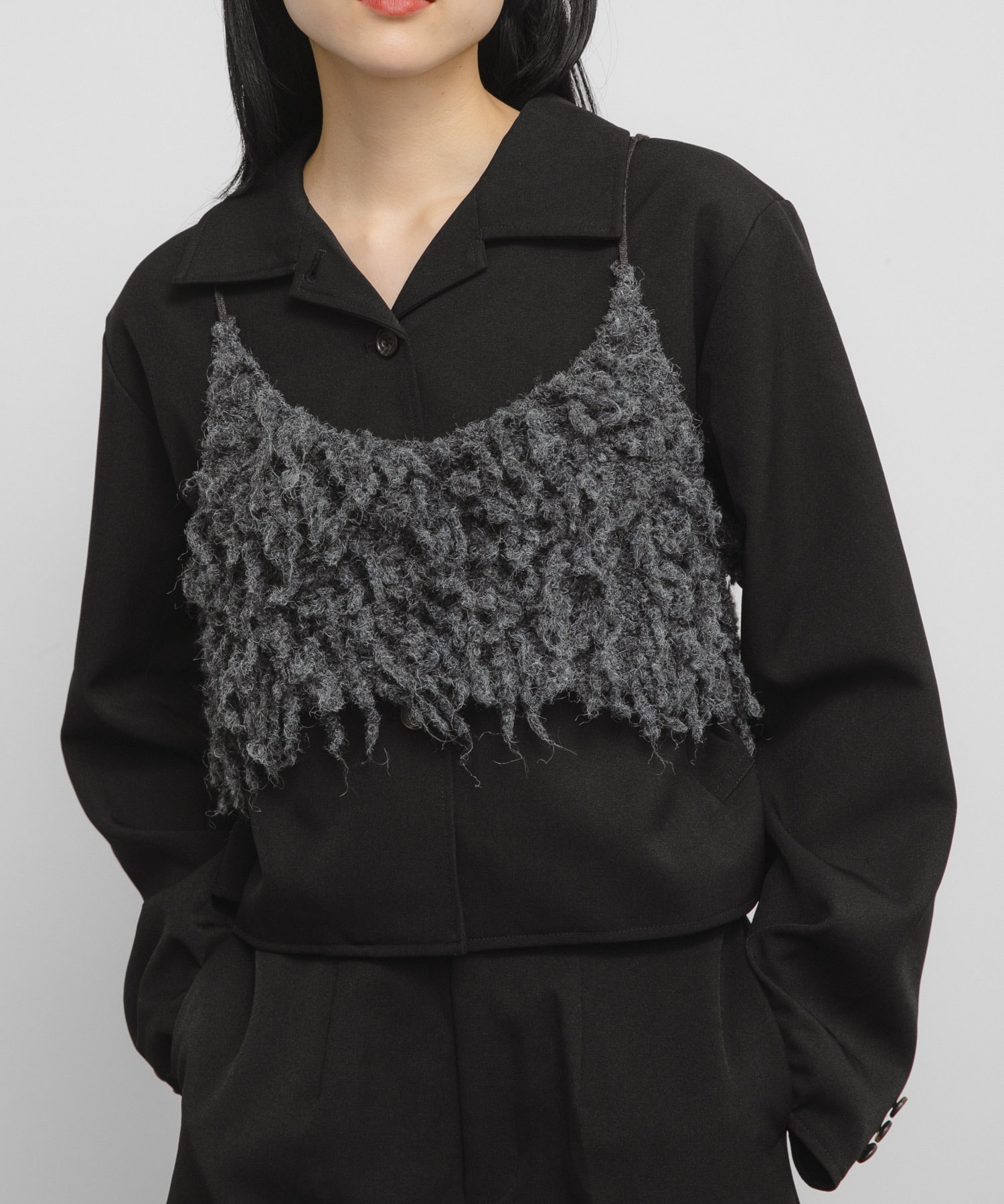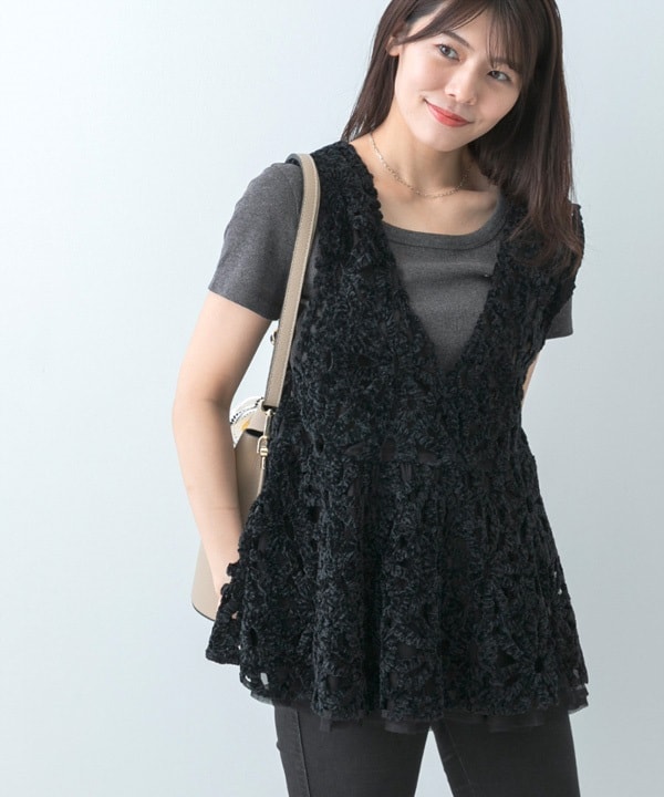 F by ROSSO雪尼爾紗蕾絲荷葉下襬背心