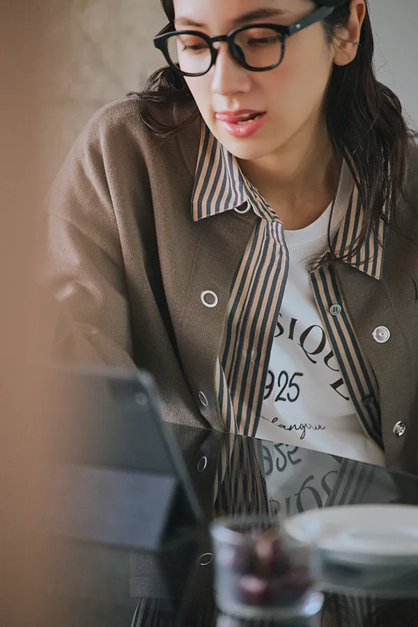 前襟打開時可作為罩衫,扣上時則能像上衣般穿搭,長度恰到好處的開襟衫,輕鬆搭配同色系直筒裙。疊穿襯衫或針織上衣,能創造出無限的造型變化。