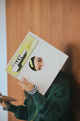 其實我蠻常猶豫的(笑)。如果說挑選方式的話,我會依照要見的人來決定。工作時,可能會穿自己喜歡的 T-shirt 或能讓自己心情變好的衣服;如果要見喜歡音樂的朋友,就會穿上印有我喜歡的 CD 封面的 T-shirt,會因為人或場合不同而做搭配。