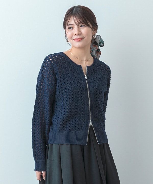 F by ROSSO 鏤空織紋拉鍊開襟衫