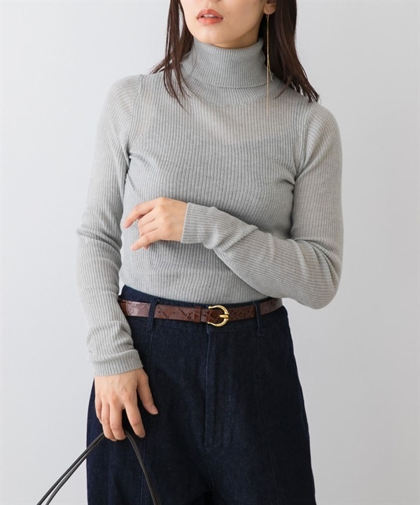 F by ROSSO 可水洗透膚羅紋高領針織衫