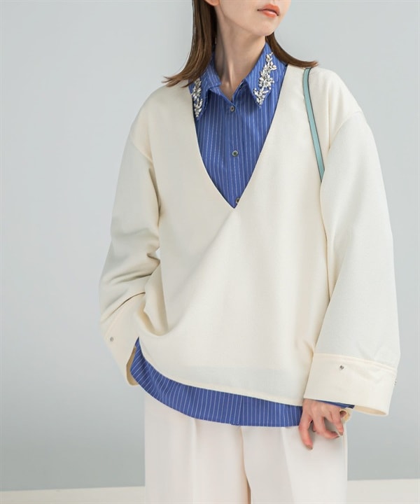 2WAY寶石領寬版襯衫
