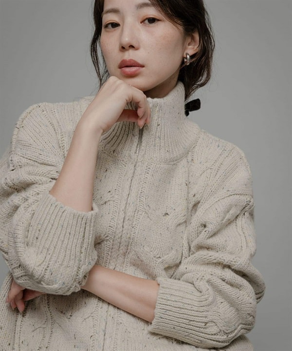 羊毛麻花針織拉鍊外套