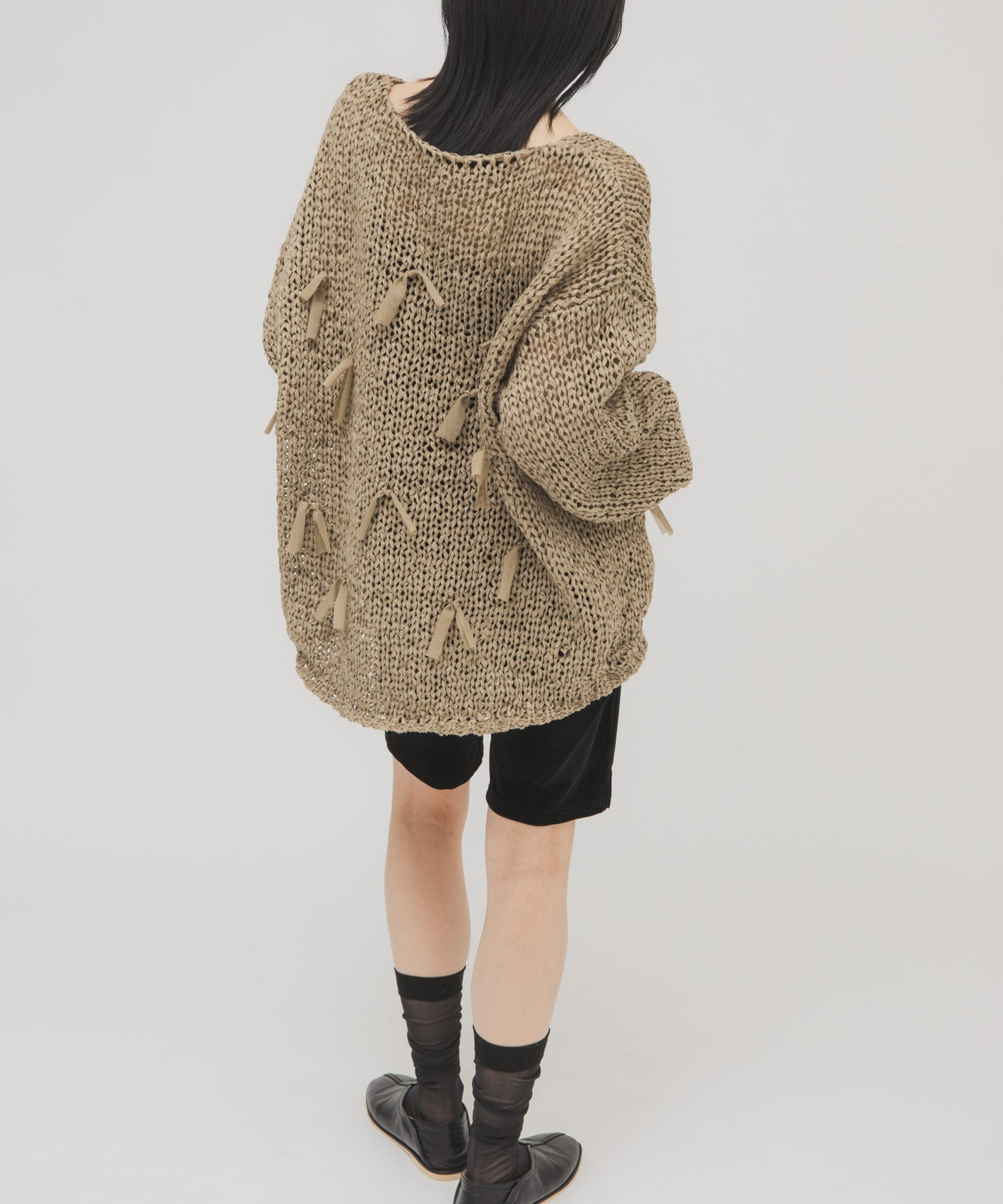 帶狀紗蝴蝶結寬版針織衫