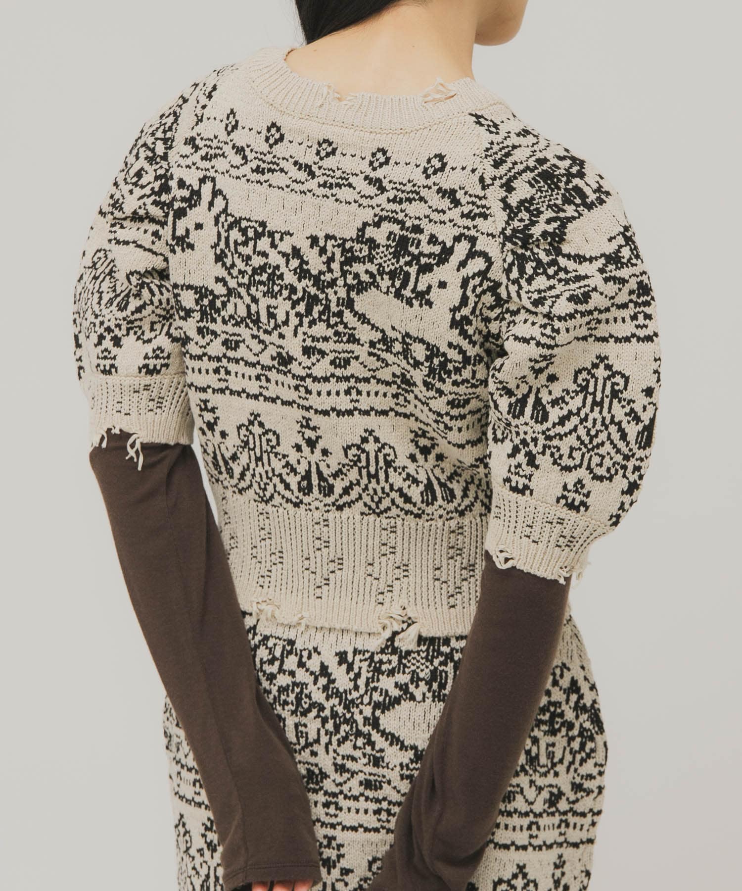 緹花蓬袖針織衫(可成套搭配)
