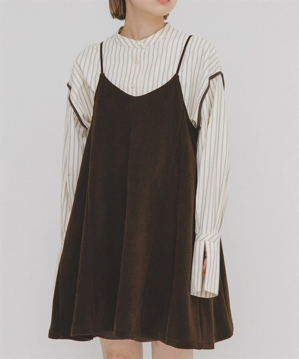 雪尼爾紗羅紋迷你細肩帶洋裝