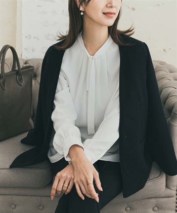 原子扣領結打褶罩衫