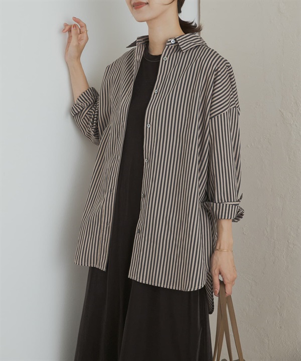直條紋寬版襯衫